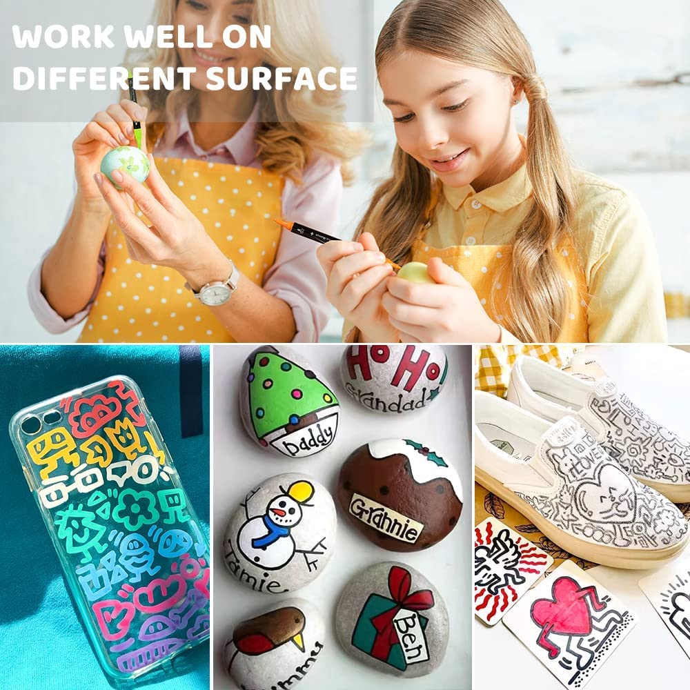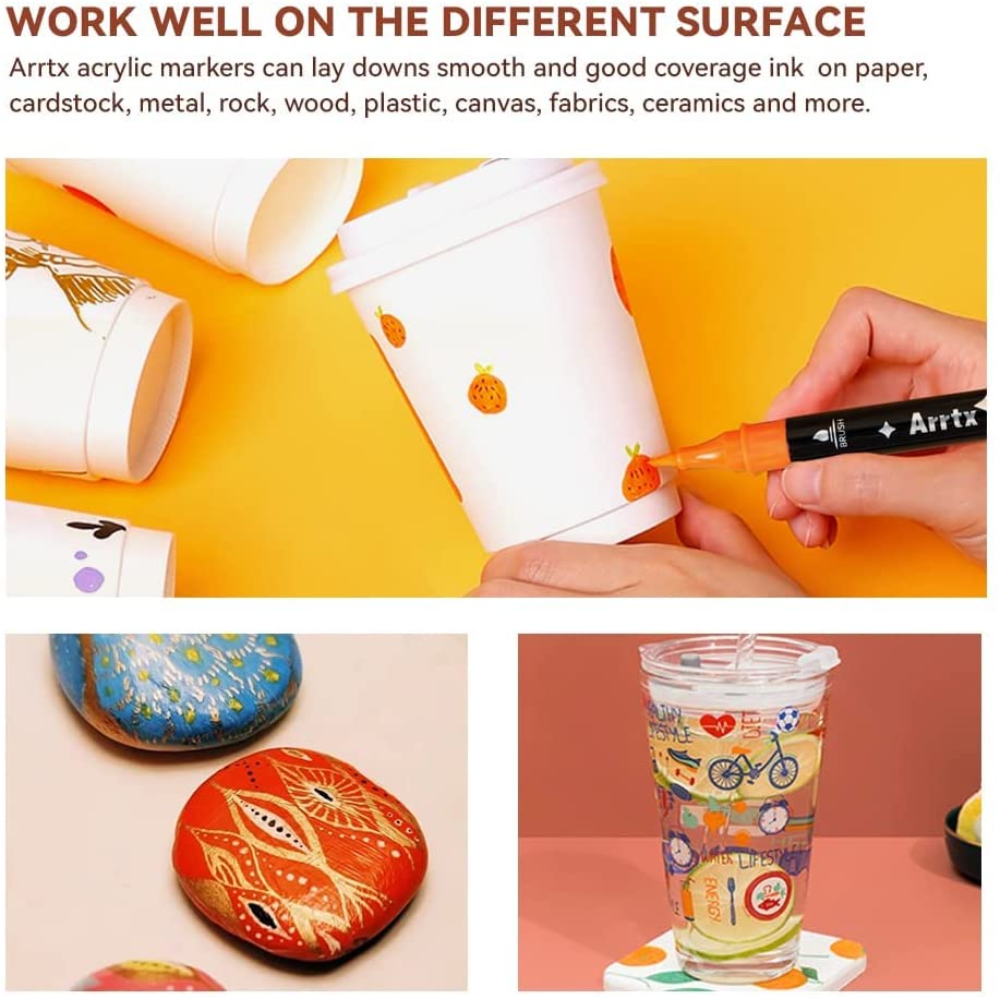Dual tip acrylic paint pens- Each acrylic marker come with a brush tip and a fine tip.