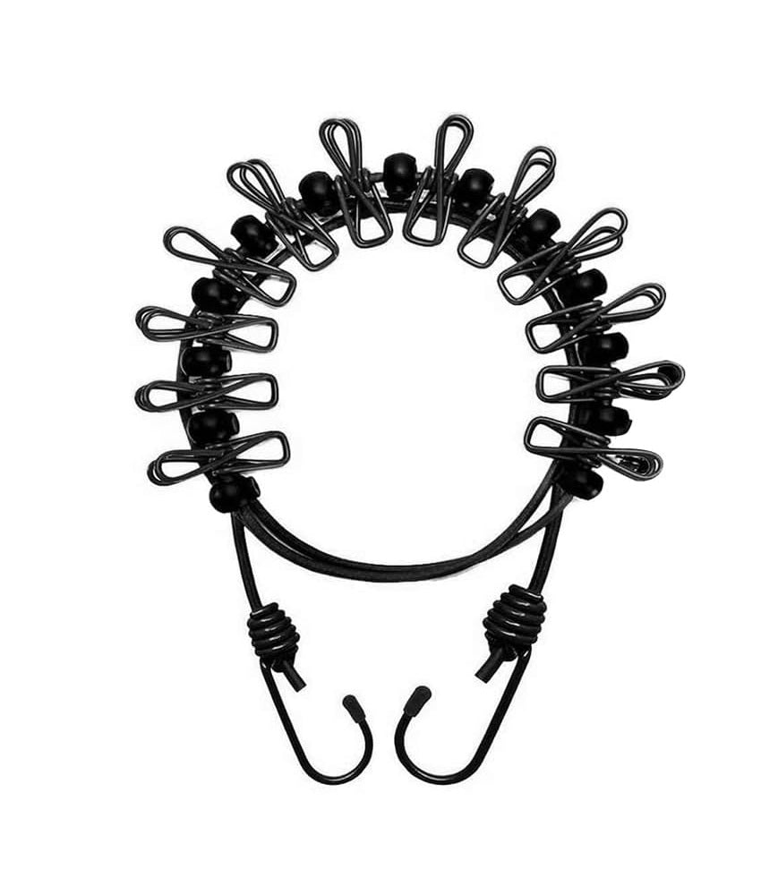 Washing line with reinforced steel hooks can be hung anywhere, outdoors, indoors, camping, traveling.
