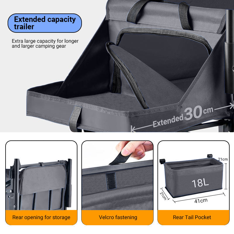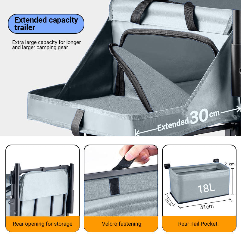 Our voyager wagon has an extended capacity trailer compartment of 18L which allows for storage of longer camping gear or other items, making it convenient for storing.