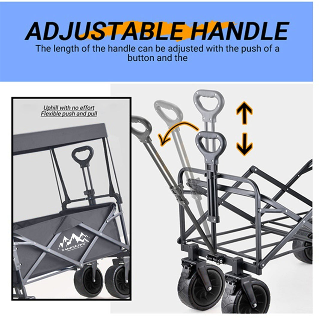 The CampsBerg voyager wagon is your perfect companion for beach trips, picnics, camping, shopping, gardening or a trip to your next expo.