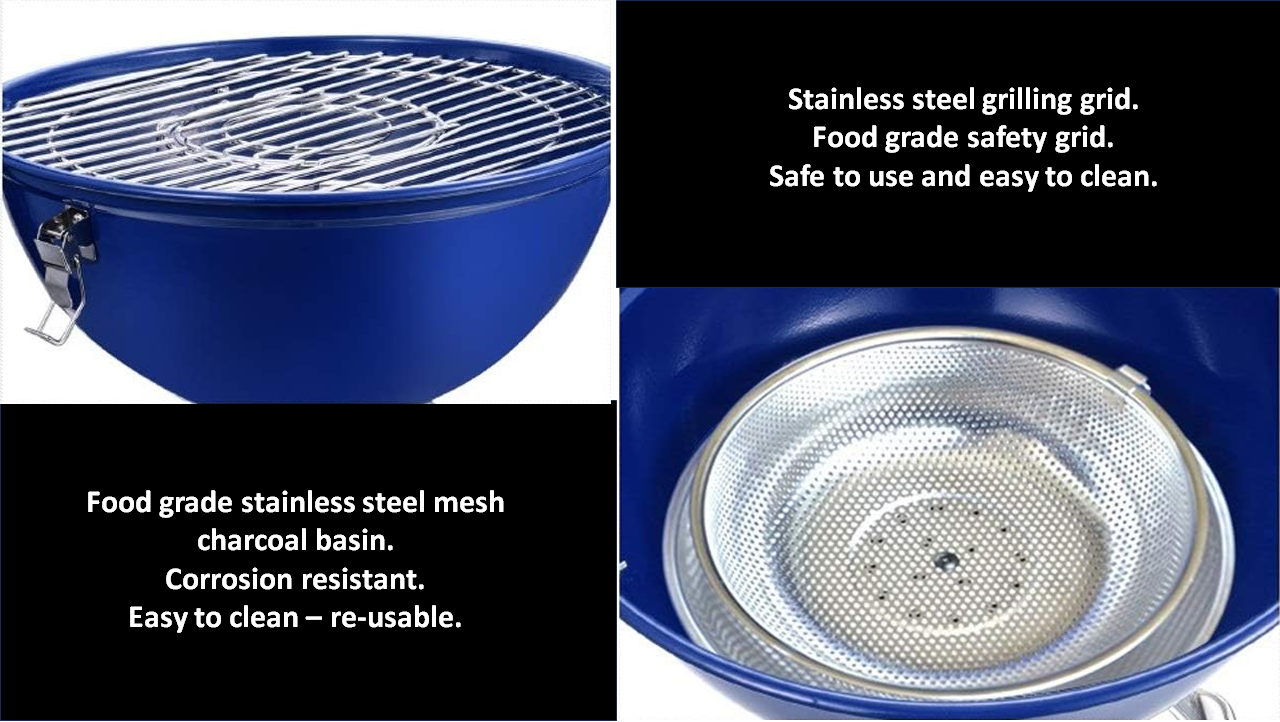 The hollow stainless steel mesh basin allows you to easily place your charcoal inside the braai.
