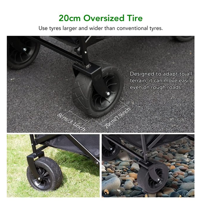 Strong and durable material. We attach great importance to the quality and durability of our collapsible wagon carts.